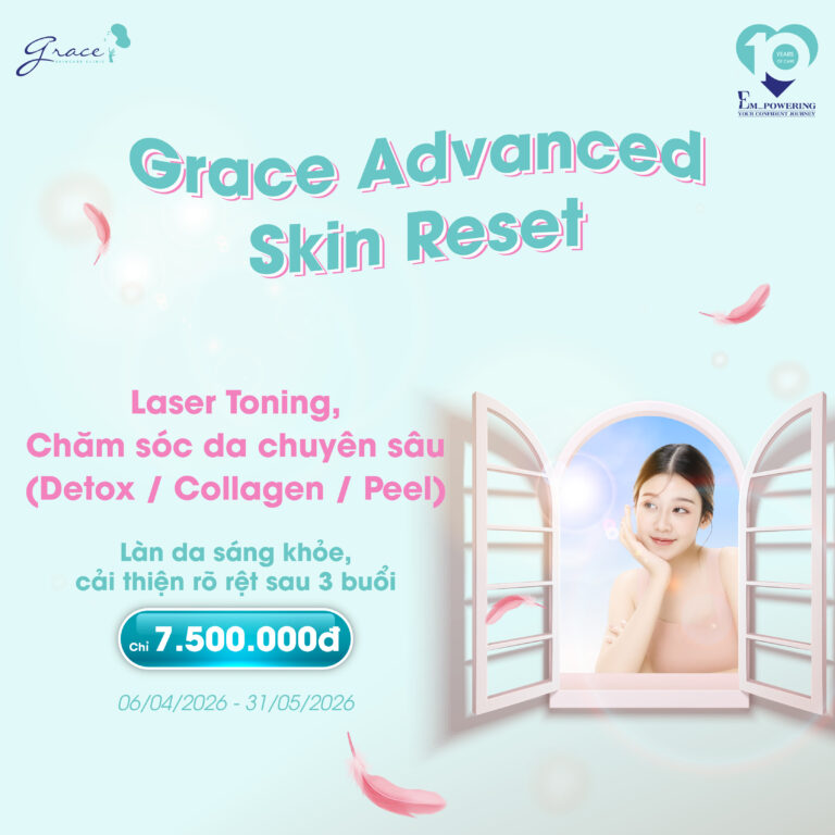 Inbox ngay để được tư vấn chi tiết hoặc ghé thăm Grace Skincare Clinic để soi da, thăm khám trực tiếp cùng bác sĩ da liễu.